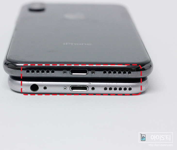 위에서 잠시 언급했던 모진 풍파를 겪은 액정 깨진 아이폰6S입니다. (스크래치가 보이시죠.) 보시면 이어폰 단자가 있던 자리에 스피커가 하나 더 생겼습니다. 이제 막 사용해봐서 음질에 대한 부분을 잘 모르겠지만, 음악 어플을 사용하다보면 느끼게 되겼죠. 추 후에 이에 대한 리뷰를 작성해보겠습니다.