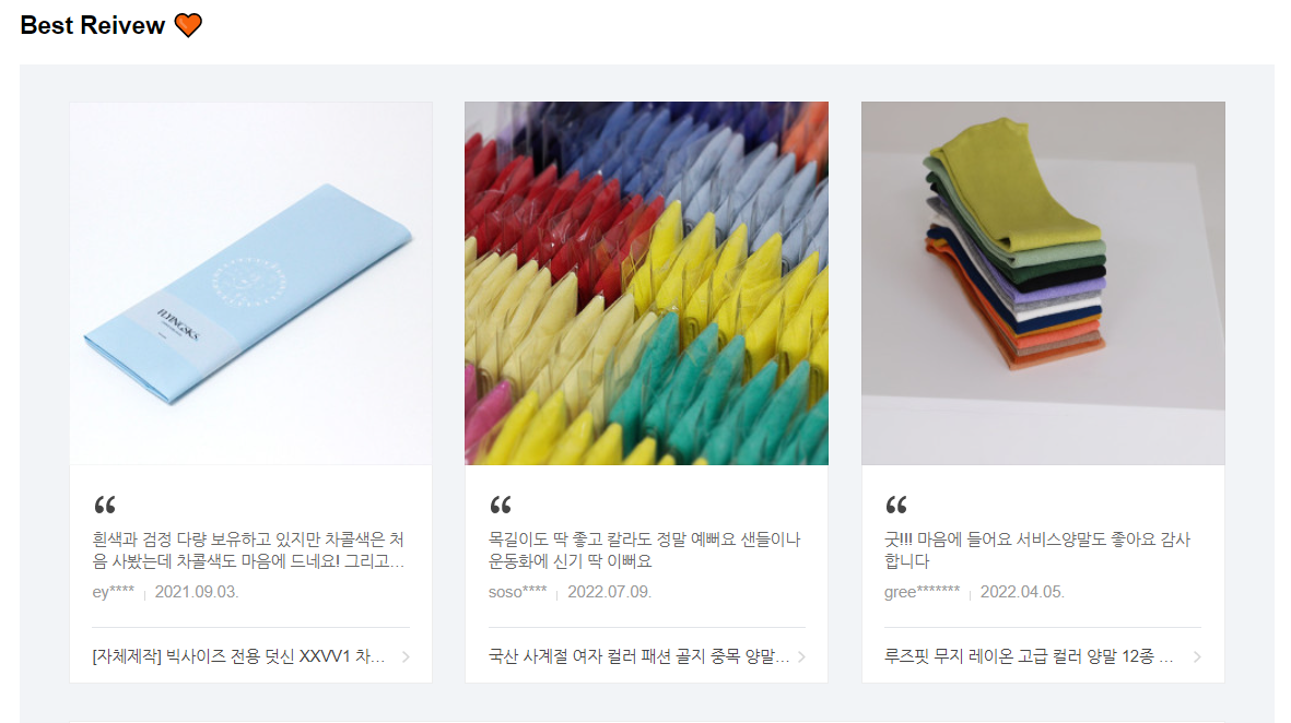 여러분들은 제품을 보실 때 최우선적으로 보는 게 무엇인가요? 제품의 퀄리티와 색상이기도 하지만, 그 잣대를 결정짓는 요소는 "리뷰"가 아닐까요? 나와 같은 제품을 구입한 사람이 좋다고 평가했고, 좋은 평가들이 많이 쌓여져 있다면 구입할 때 실패할 확률이 상당히 떨어질 겁니다.