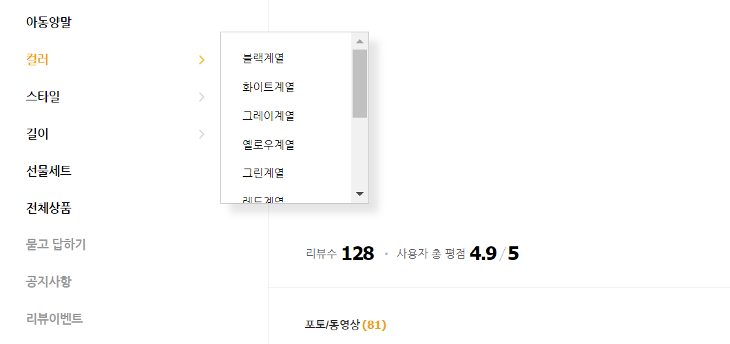 별도의 카테고리를 통해서도 원하시는 색상에 따른 스타일도 참고하실 수 있습니다. 해당 작업이 오래걸리긴 하지만, 구입하시는 분들에게 최대한 직관적으로 상품을 보여드리고 싶어 별도의 카테고리를 만들었습니다.